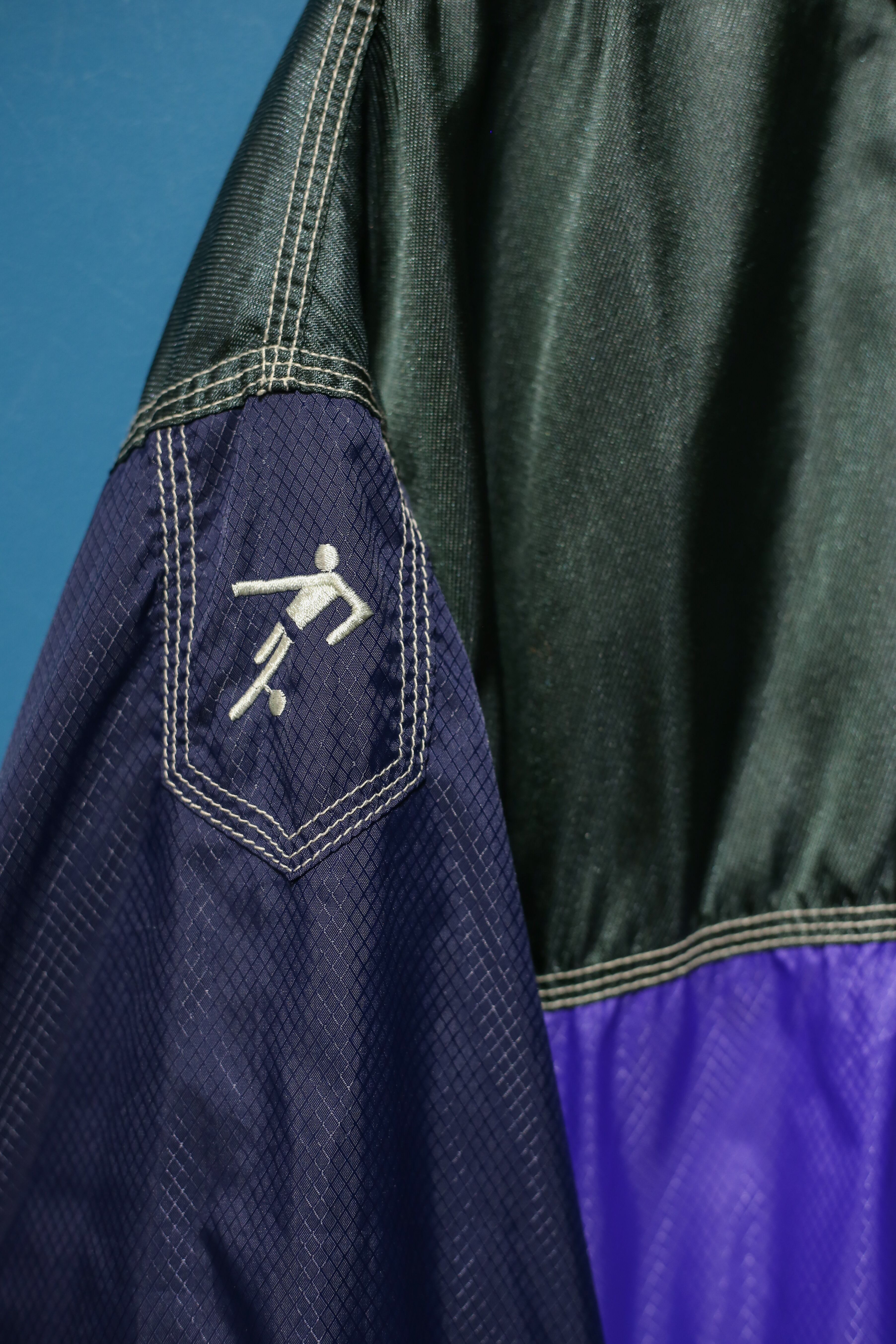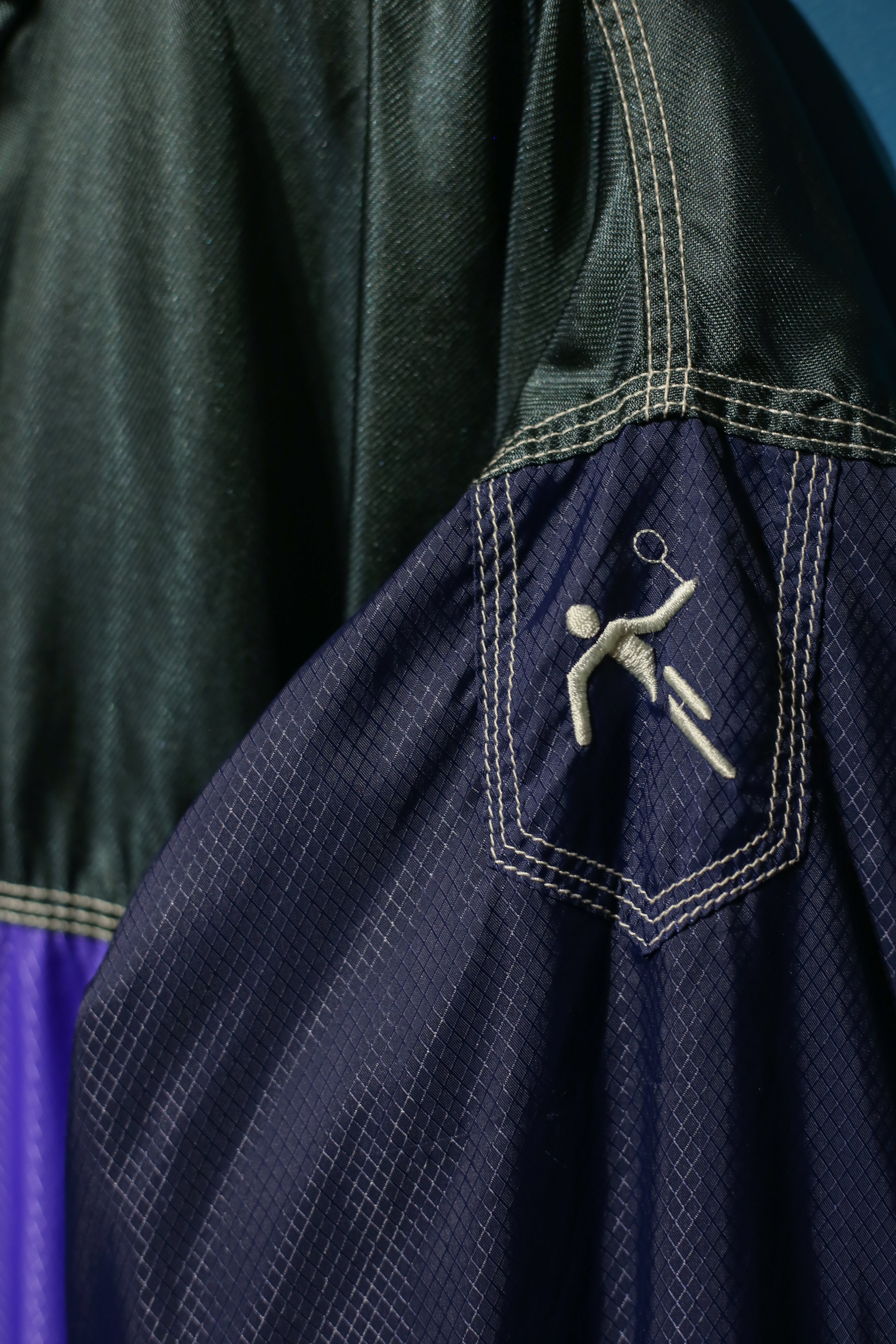 襟元と肩にオリンピックのピクトグラムのように、様々な種目の刺繍が入ったユーロジャケット