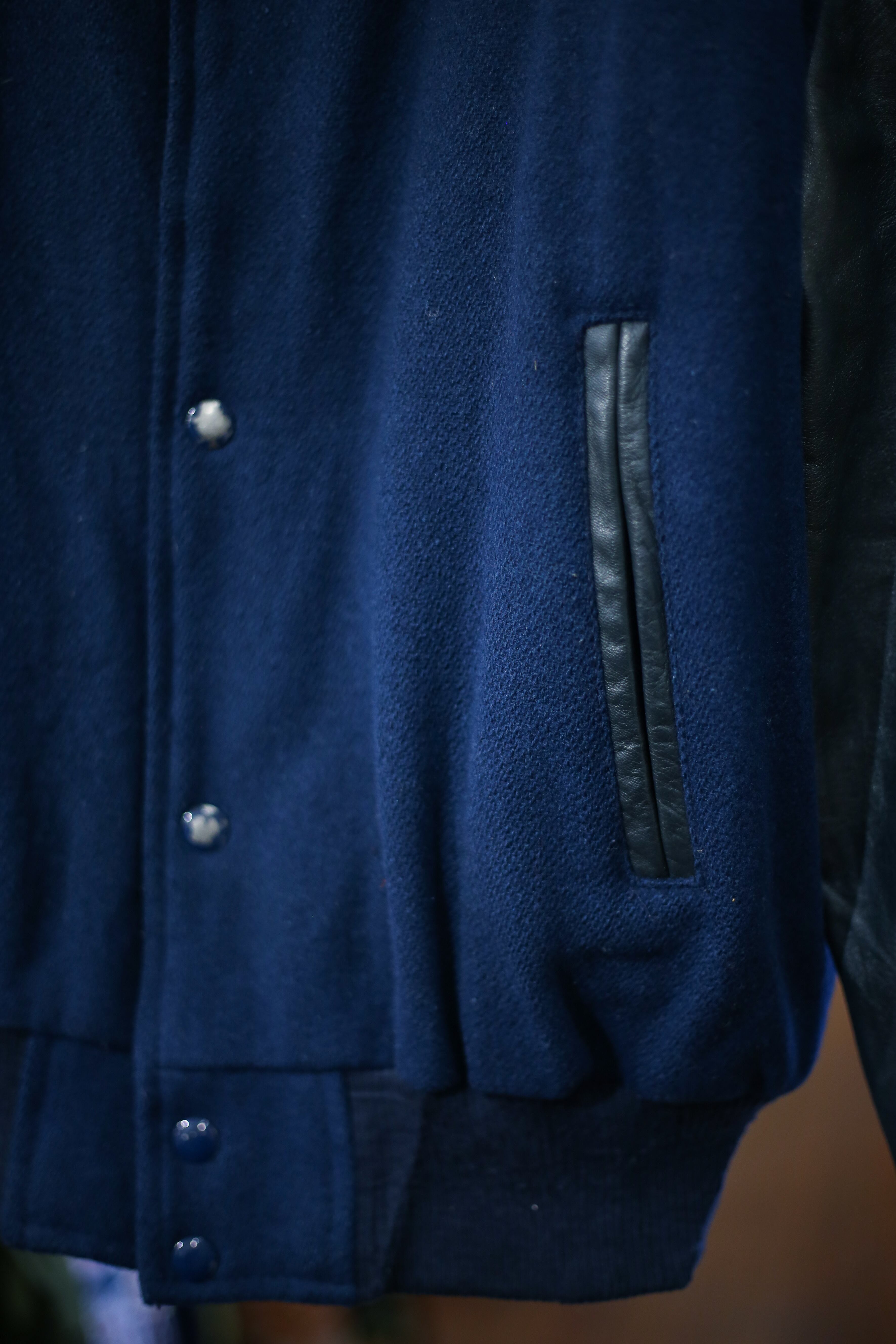 濃いブルーのスタジャンに