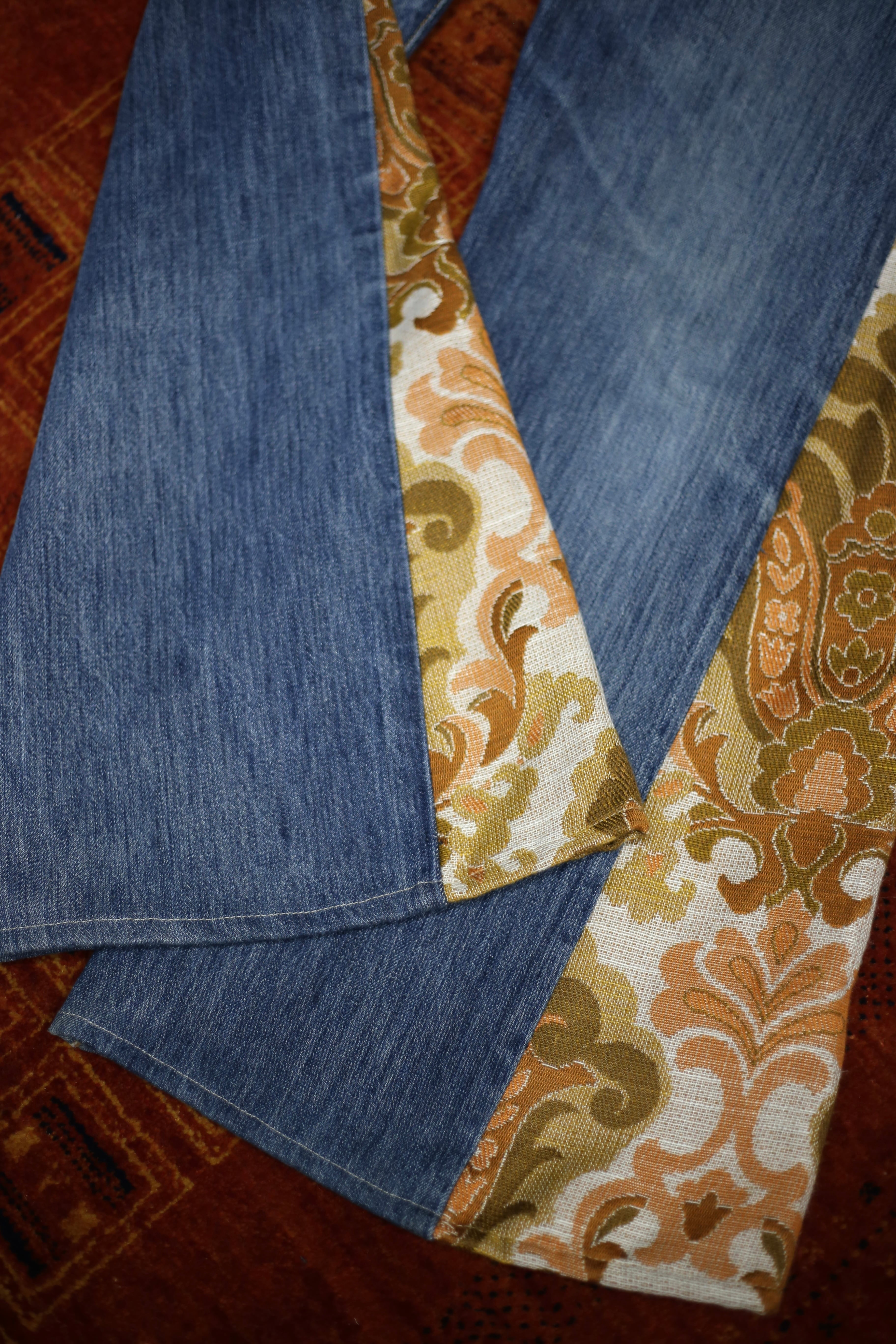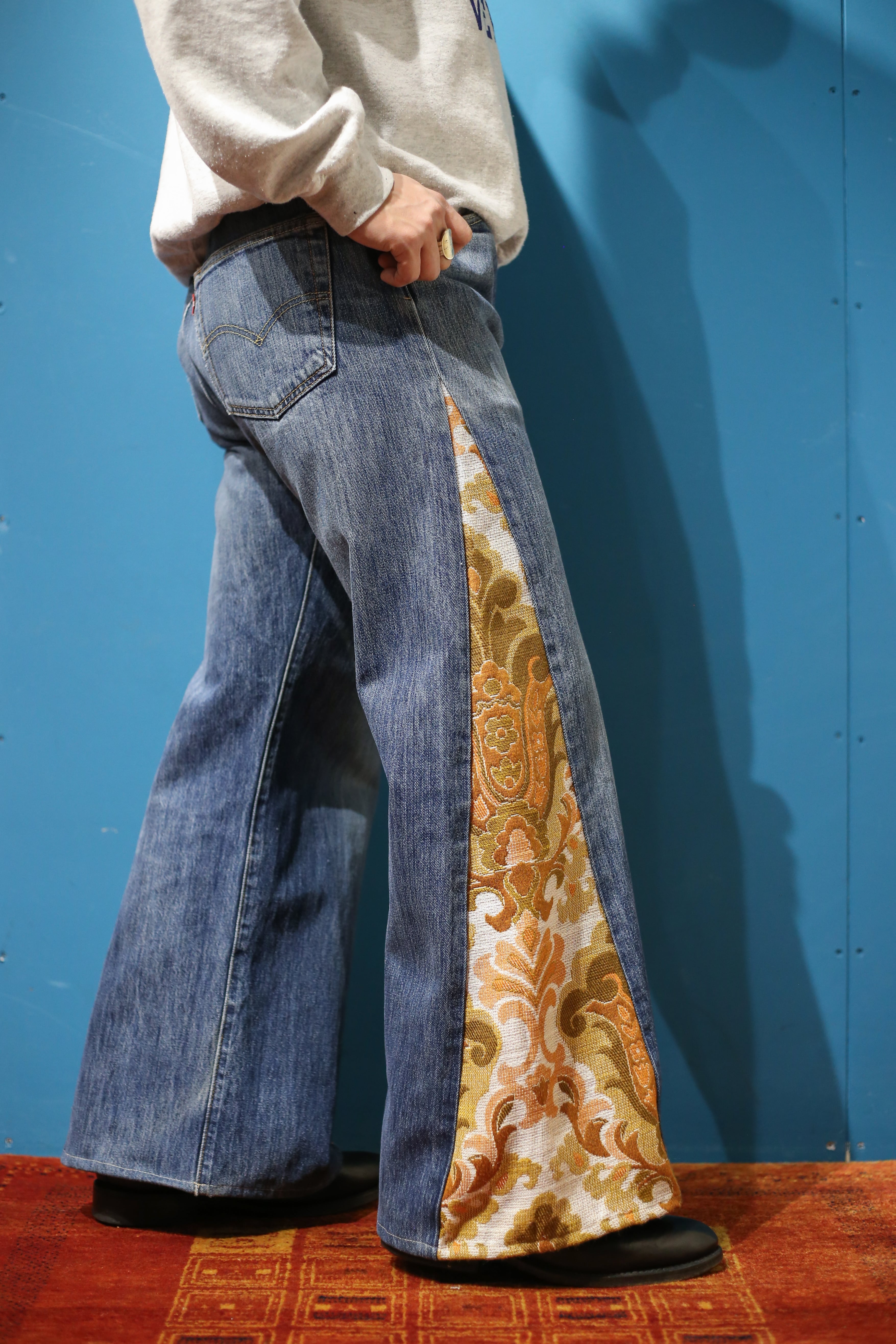 Levi’s の501デニムをベースに暖色カラーのビンテージカーテン合わせました。